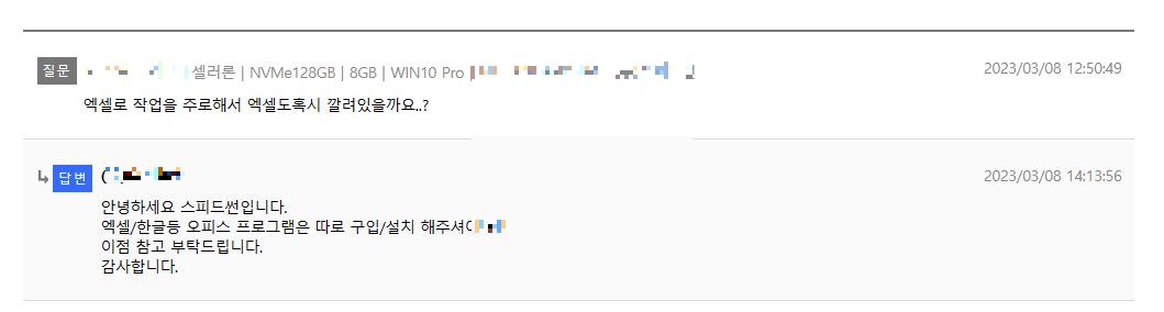 그래서 그 경험을 바탕으로 이후 노트북 살 때 윈도우 설치 여부를 Q&A 통해서 꼭 확인을 하고 산답니다. 당연히 제가 구입한 삼성노트북 제품은 윈도우 설치가 되어 있습니다.