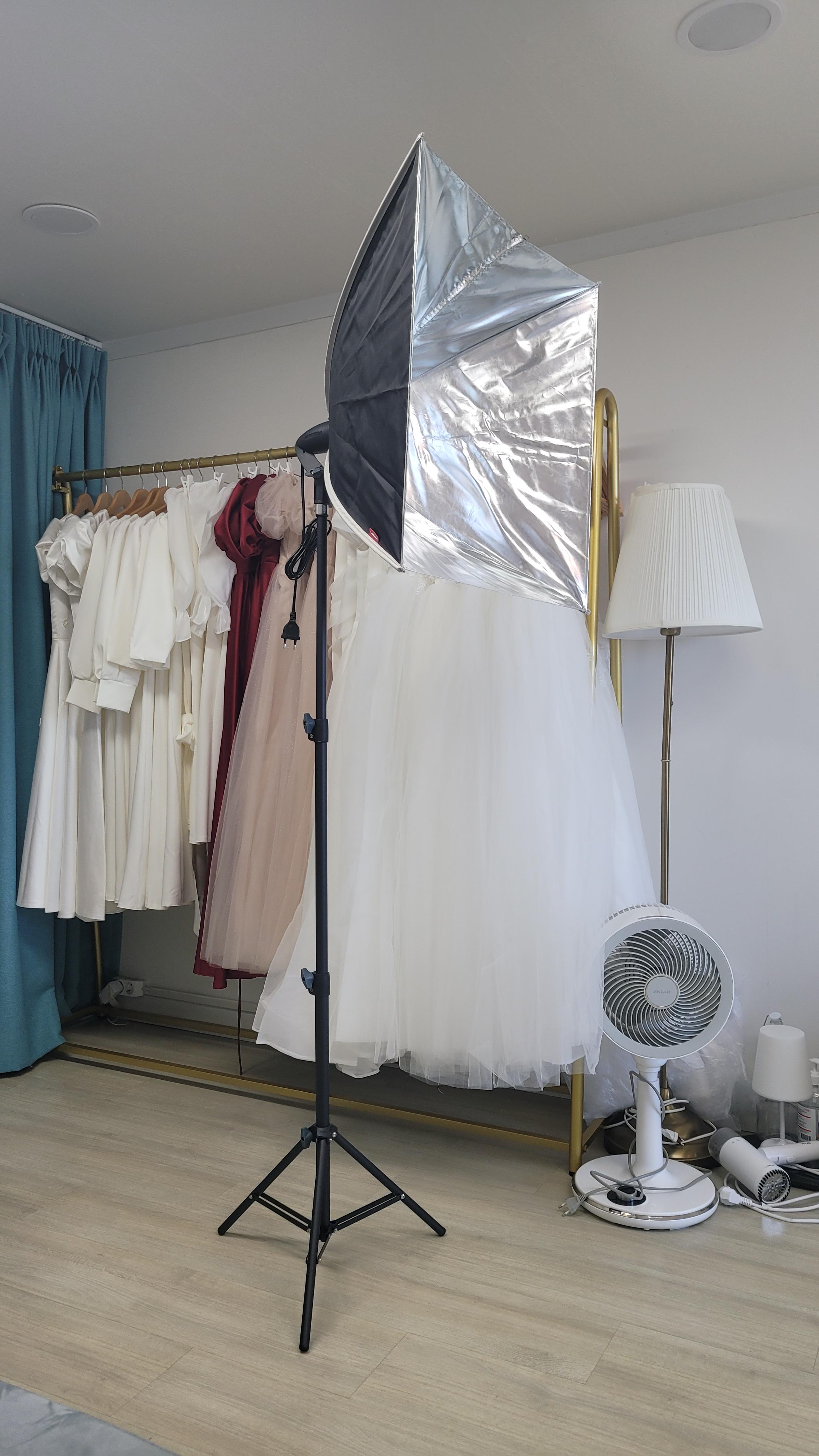 바닥에 있는 제품도 조명을 쏴주는 게 가능하고 사람 얼굴 높이도 조명 쏴주는 게 문제가 없는 소프트박스 반사판입니다. 무엇을 촬영하시든 공간 안에 촬영하시는 수준이라면 높이가 안 맞을까봐 걱정하실 일 없습니다.