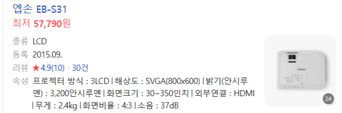 그런데 오히려 새로 사려니까 더 좋은 걸 발견한게 같은 앱손 EB-S31 프로젝트 중고 제품을 30만원이 안 되는 가격에 판매를 하고 있다는 걸 알게 됐어요.