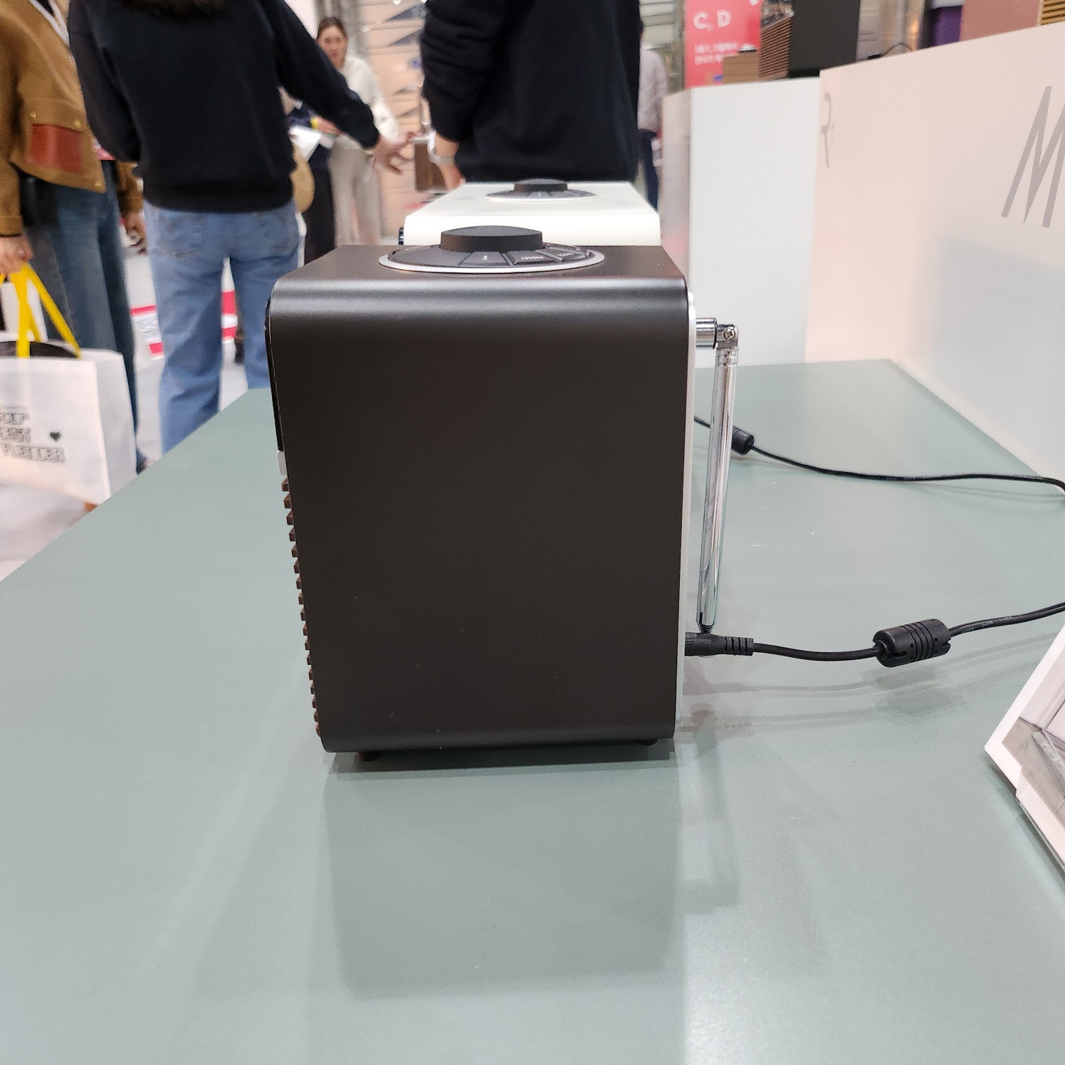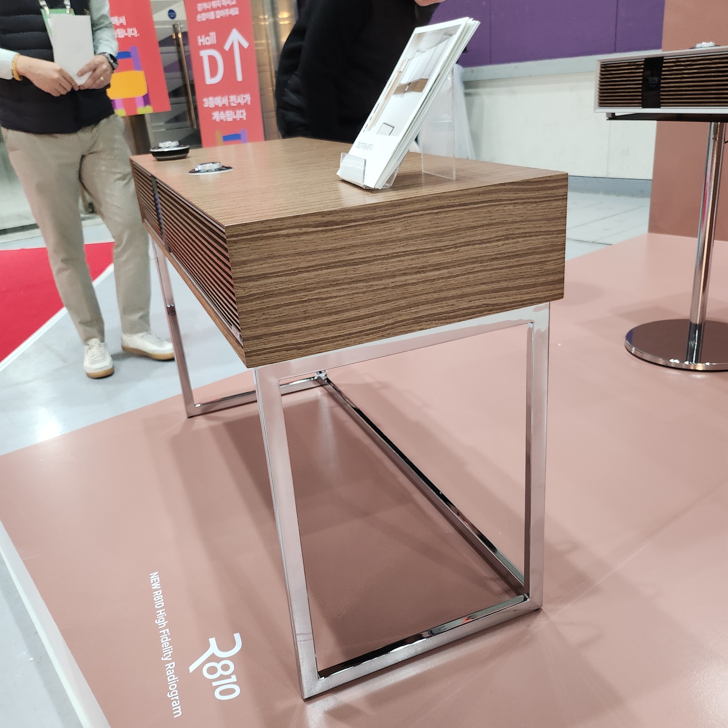 루악오디오 부스에서 눈에 제일 띄었던 제품이었어요. 저뿐만 아니라 다른 분들도 R810 이 제품 많이 관심 보이시더라고요. 사이즈는 바같은 협탁 가구느낌이어서 그냥 가구로 사용하면 될 것 같았어요.