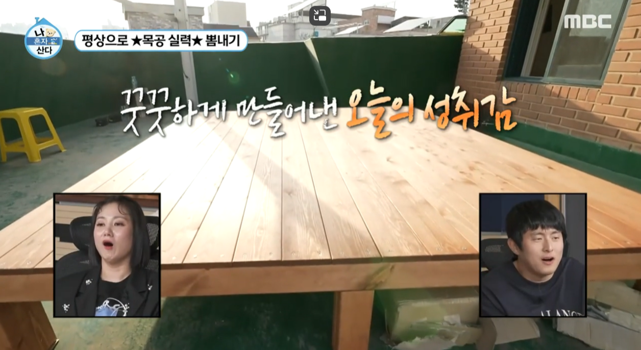 나혼자산다 541회에서는 이주승 무지개 회원이 친구 구성환에게 선물로 평상을 선물해주는 게 나옵니다. 이주승 회원이 현재 목공을 배우는데 마침 친구 구성환 옥상에 사용할 조립형 평상을 선물하는 장면이 나옵니다.