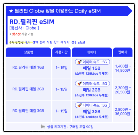필리핀에서 데이터를 쓰는 방법은 크게 세 가지입니다.