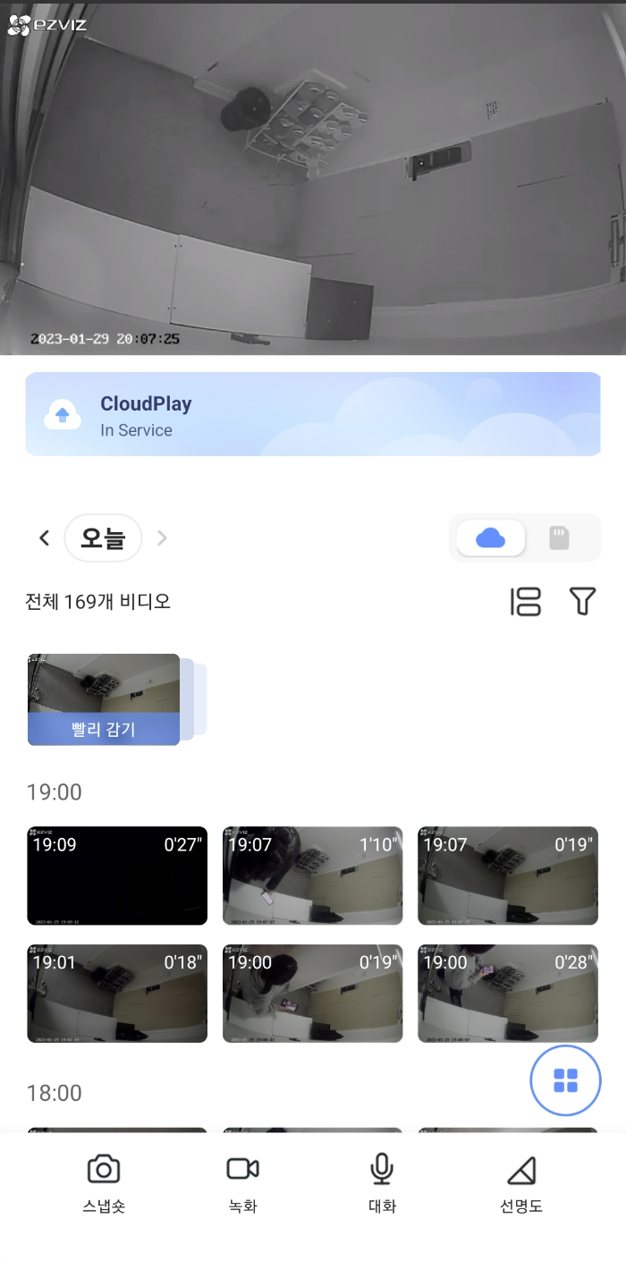 EZVIZ CCTV 장점 1 : 움직임이 있는 경우만 촬영해서 유의미한 정보만 보기 쉬움.
